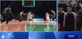 曾凡博起飞欲扣 付豪凶狠犯规将其拽倒 裁判回看后普通犯规